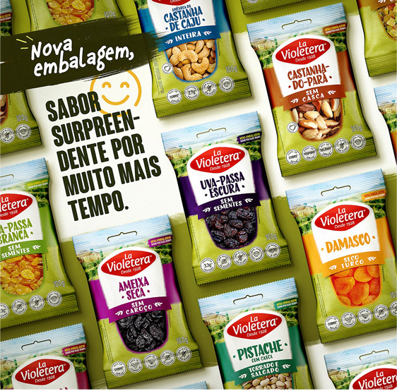A La Violetera busca sempre surpreender as pessoas com os sabores do mundo. A marca conta com um mix completo de frutas secas, incluindo: tâmara, damasco turco, pistache, uva-passa, ameixa, castanha-do-Pará, castanha de caju, nozes, amêndoa, frutas cristalizadas, entre outras variedades, comercializadas nas mais diversas opções de embalagem.