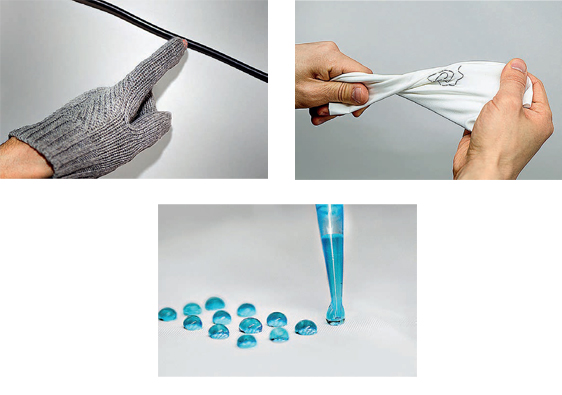 Um revestimento de moléculas fluoradas é aplicado nas roupas, que, além de inteligentes, são à prova d’água, repelem manchas e resistem à limpeza em máquinas de lavar.