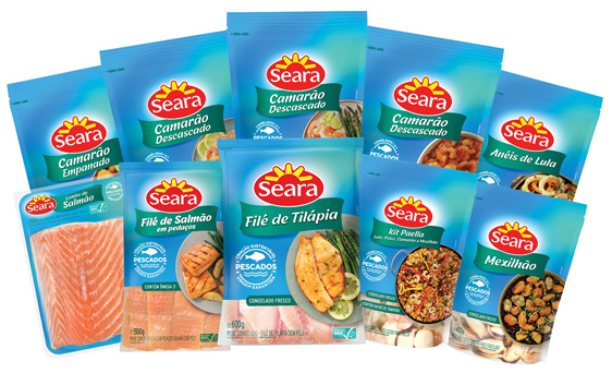 Com um portfólio composto por Filé de Tilápia, Salmão em pedaços, Lombo de Salmão, Kit Paella, Mexilhão, Anéis de Lula e quatro opções de Camarão, a Seara entra no segmento de peixes e frutos do mar.
