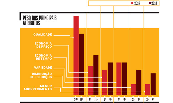 Você sabe quais atributos estão ganhando ou perdendo importância na conquista da lealdade do consumidor? A consultoria Bain & Company identificou aqueles que estão sendo mais valorizados pelas pessoas, a partir de três ferramentas suas: uma que avalia o quanto o consumidor promove uma marca e outras duas que calculam pontos para esses atributos. A partir delas foram analisadas empresas que atuam online, como Amazon, Costco, eBay, Target e Walmart. Veja a seguir os resultados de 2018 comparados com os de 2015: