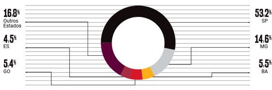 A maior fatia fica com São Paulo, que responde por 57,7% do potencial de consumo de alimentos em domicílio na região Sudeste.
