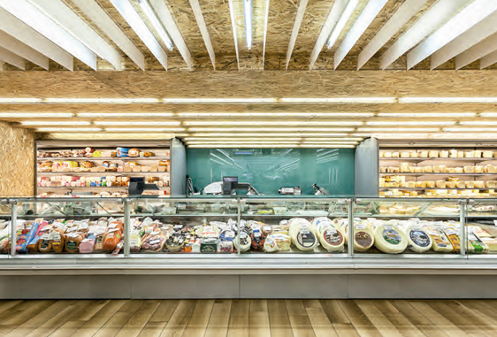 O supermercado Thanopoulos, instalado no norte de Atenas, na Grécia, passou por uma reforma, tendo suas prateleiras reorganizadas e toda a área de circulação reestruturada. Porém, na tentativa de melhorar a navegação, os proprietários se depararam com um desafio: o pé-direito baixo do edifício. A solução encontrada, que inclusive trouxe um layout mais agradável, foi criar uma estrutura de linhas verticais intercaladas por lâmpadas fluorescentes, que fizeram toda diferença, trazendo amplitude, além de uma iluminação impactante.
