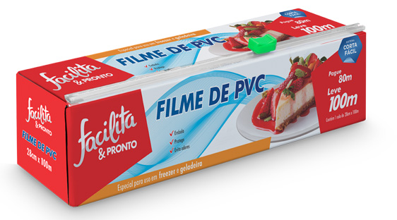 Outro diferencial de Facilita&Pronto são os investimentos constantes em inovações que garantem mais valor agregado no varejo. Um dos novos produtos lançados recentemente é o Filme de PVC com Trilho. Seu exclusivo sistema Corta Fácil não deixa o filme enrugar e, dessa forma, soluciona uma queixa comum dos consumidores da categoria, além de garantir desperdício zero. Está disponível em 4 tamanhos, sendo que em todos eles o cliente ganha 20 metros do produto.