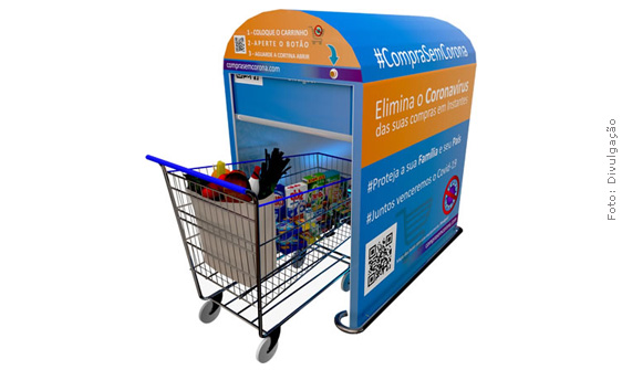 Um equipamento que utiliza raios ultravioletas para descontaminar as compras feitas nos supermercados foi desenvolvido por de forma independente por dois empreendedores de Brasília (DF) em projeto batizado de " Compras sem Corona ".