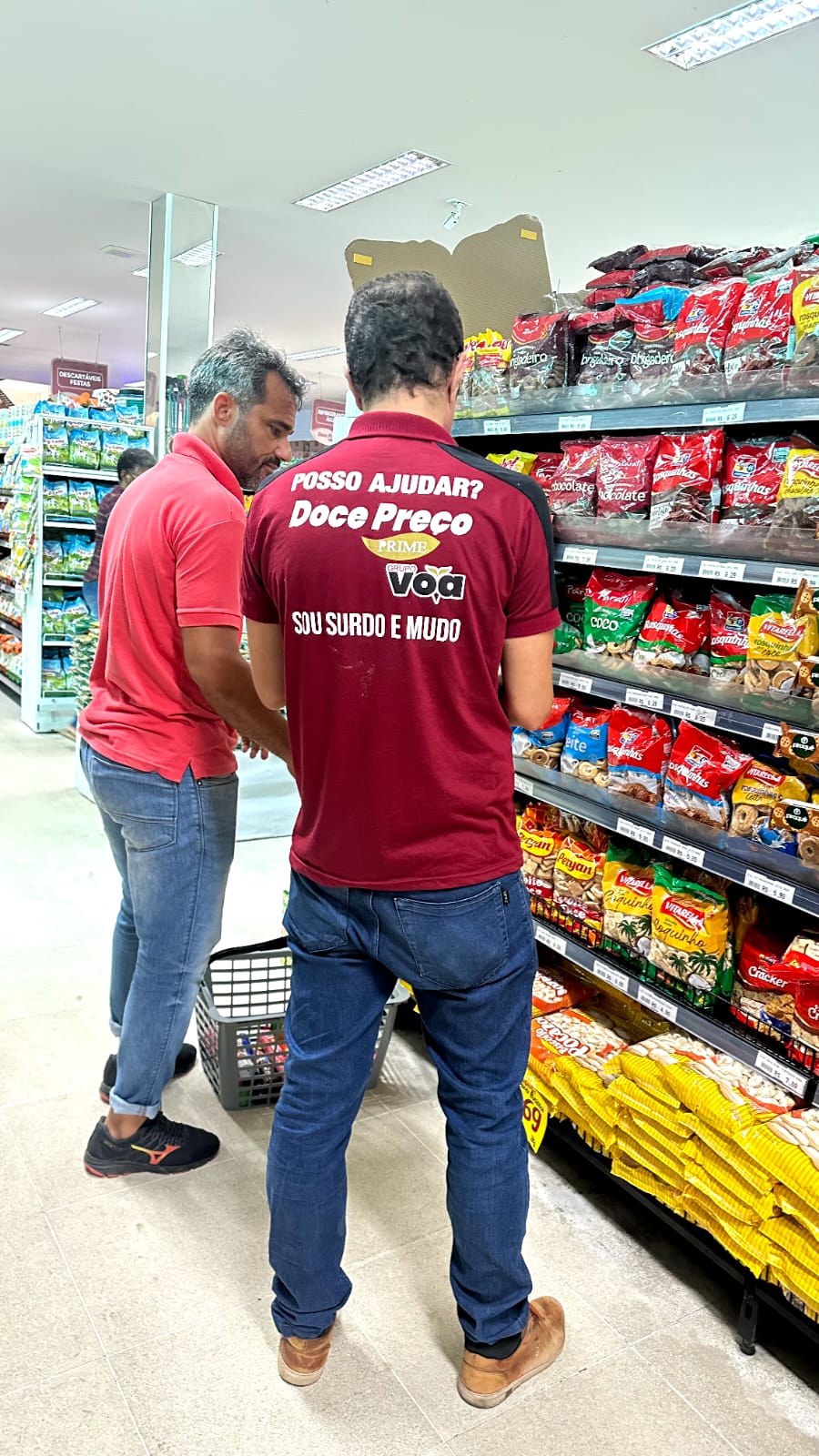 A loja possui um time treinado para comunicar-se com os clientes com deficiência auditiva na linguagem dos sinais. Um dos funcionários, Zoraildo, que atende na seção de biscoitos e cereais, é surdo e mudo