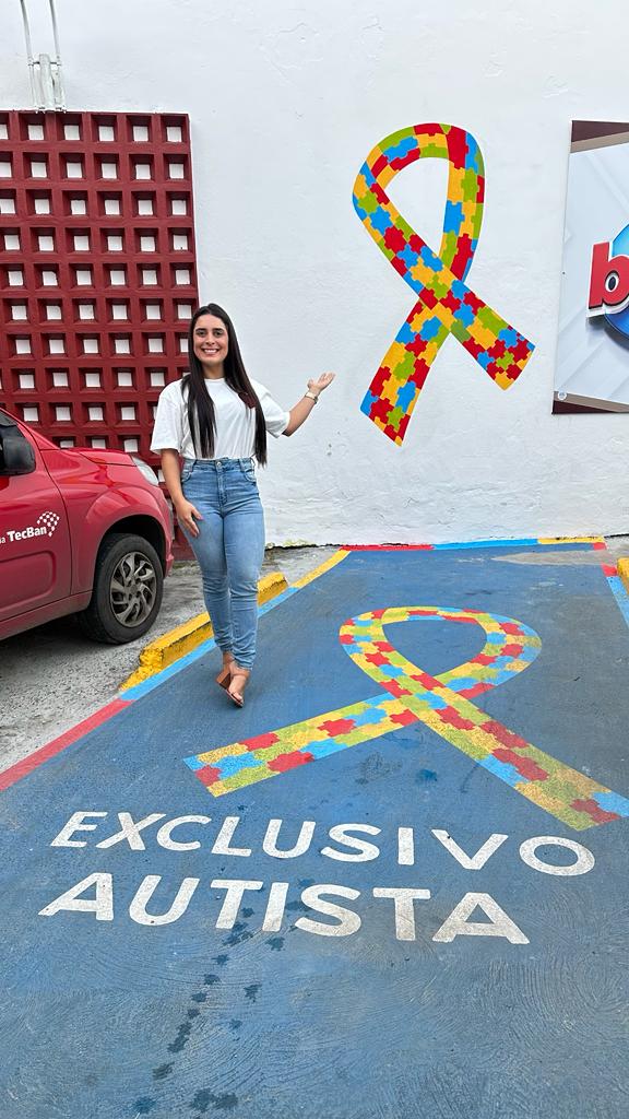 Darllane Souza, CEO da rede, mostra a vaga exclusiva para autistas