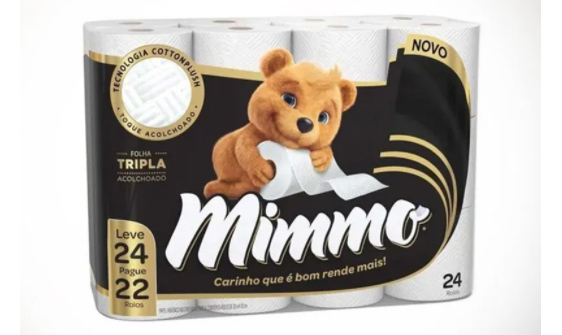 Uma das inovações é o papel higiênico Mimmo Folha Tripla Acolchoado (foto abaixo), produto premium com três camadas de fibras naturais acolchoadas e uma tecnologia exclusiva: a cottonplush, com macro câmaras de ar que proporcionam a combinação perfeita de maciez e máximo rendimento. É um sucesso de vendas desde o lançamento.