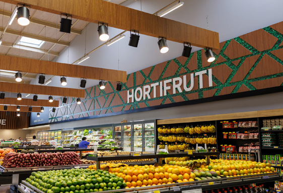 A comunicação visual foi modernizada e a frente de caixa ganhou um ambiente mais moderno e espaçoso. O hortifrúti, por exemplo, agora possui iluminação e gôndolas aprimoradas com uma capacidade de exposição ampliada para adequar mais itens.