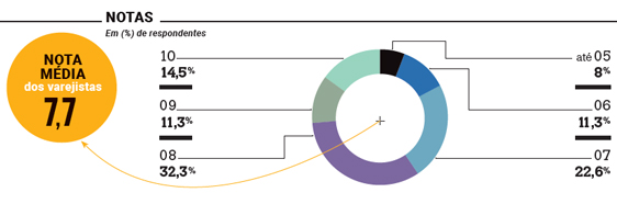 Os varejistas deram notas 1 a 10 para o seu nível de satisfação com as ferramentas adquiridas, sendo 1 nada satisfeito e 10 muito satisfeito