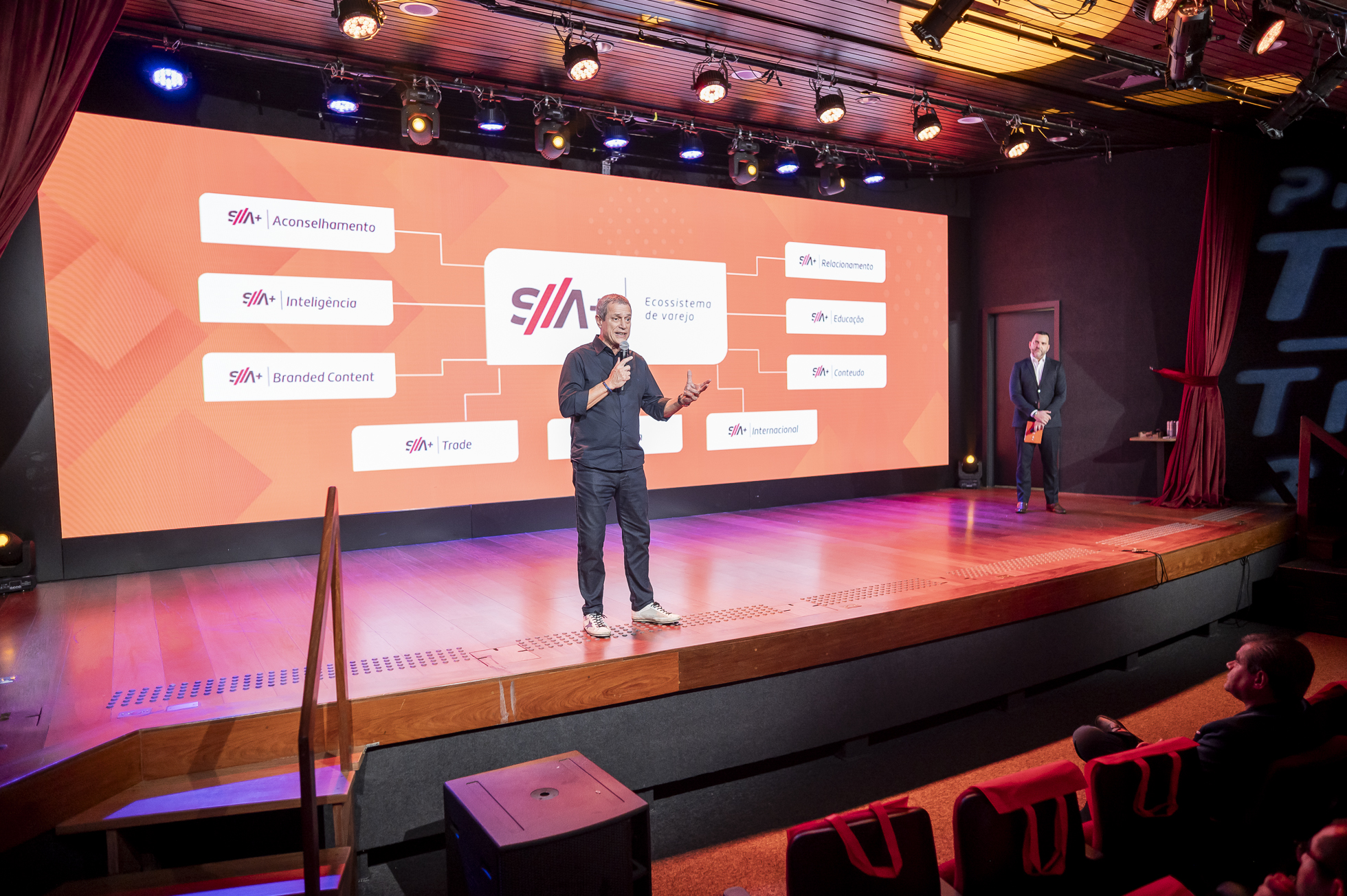 Já no palco, Eduardo Jaime, CEO da SA+ Trade, e Sergio Alvim, CEO da SA+ Ecossistema de Varejo apresentaram o evento e destacaram a sua importância.