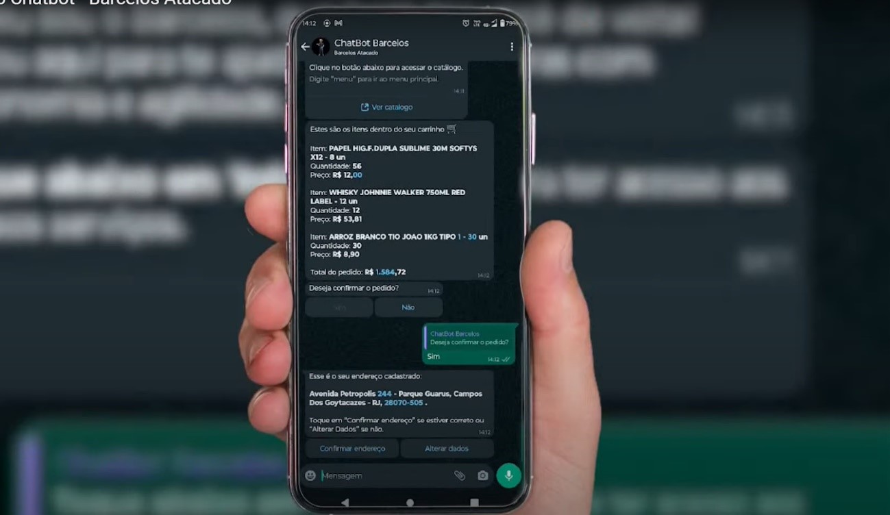 Na prática, primeiro é preciso dar um oi no número do ChatBot Barcelos Atacado, e logo depois preencher o CNPJ. Em seguida, a tecnologia permite que o comerciante selecione se precisa de ajuda ou se deseja fazer um pedido. Ao clicar na opção de compras, a plataforma leva o comerciante para os itens. Depois de fechar o carrinho, o comerciante é redirecionado para o WhatsApp para finalizar a compra.