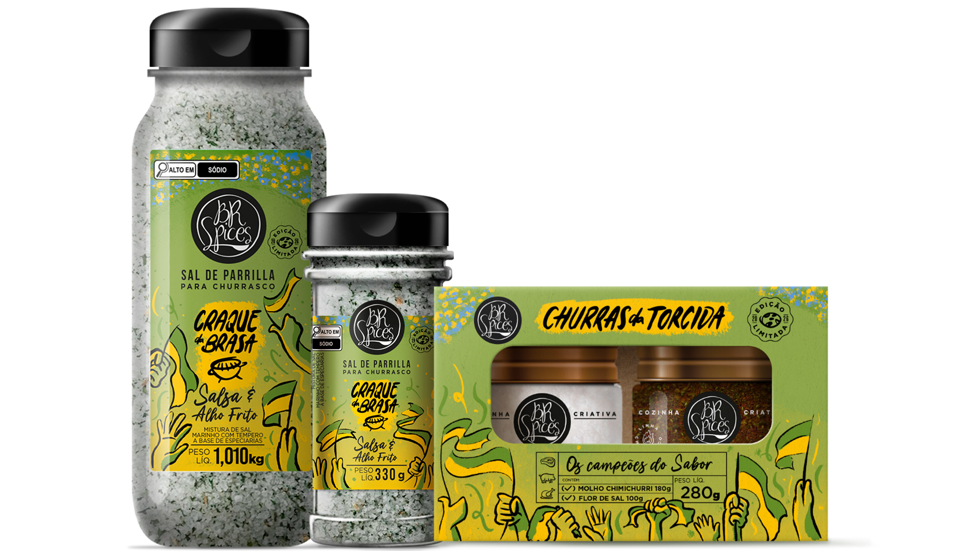 Antecipando o calendário promocional, a BR Spices lança já neste início de 2026 produtos exclusivos voltados para a torcida brasileira. O destaque é o Sal de Parrilla Craque na Brasa, disponível em embalagens de 1,010kg e 330g, temperado com salsa e alho frito nas cores verde e amarelo. Outra aposta é o Kit Churras da Torcida, que une Flor de Sal e Molho Chimichurri – dupla essencial para o churrasco – em uma embalagem presenteável.