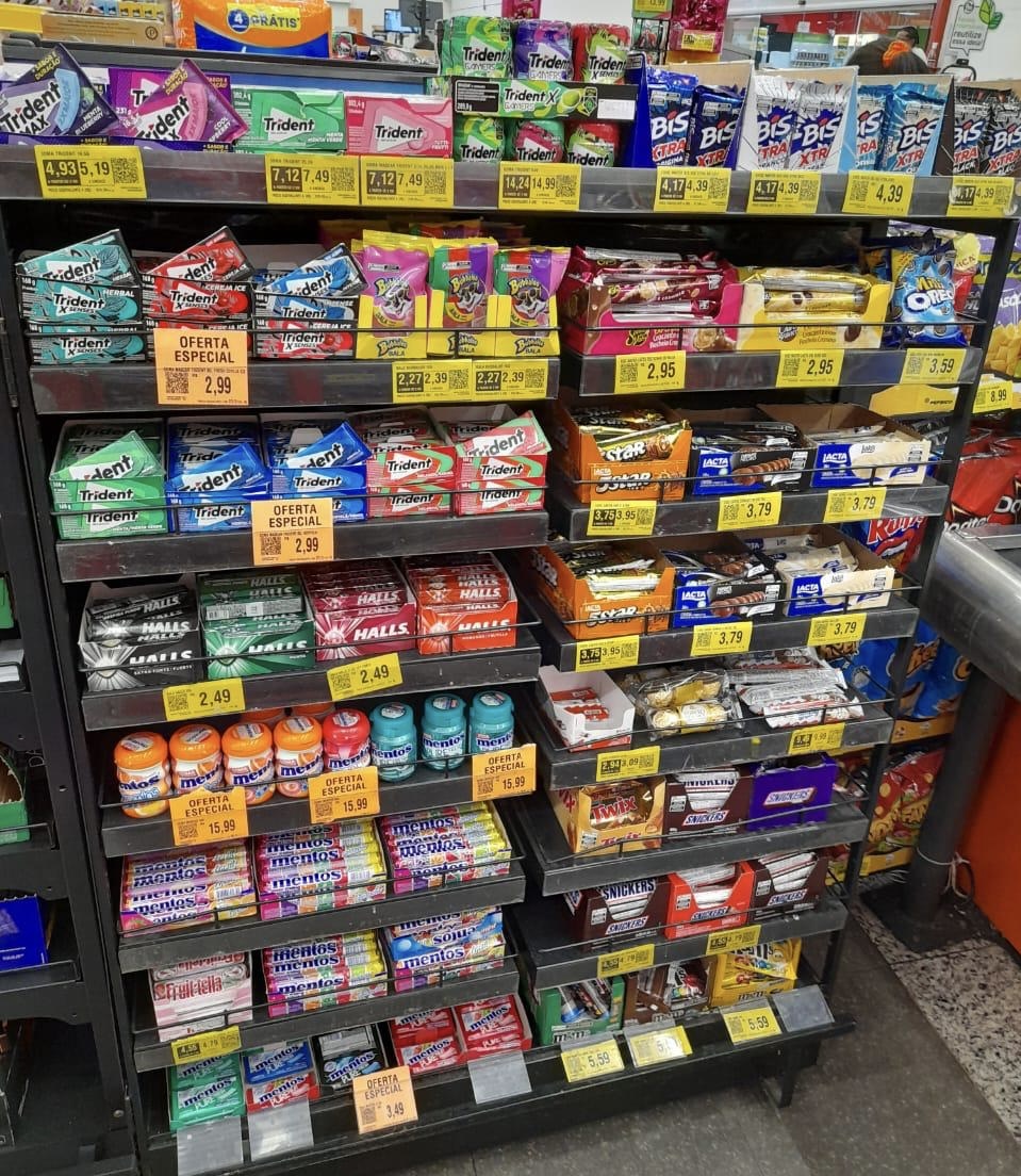 Justamente pelo fato de 50% das compras de chocolates não serem planejadas, o estudo da Mondelēz identificou a área de checkouts como um espaço importante para aumentar as vendas da categoria.