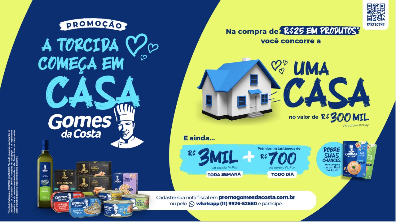 Válida de 05 de fevereiro a 05 de maio, a ação possui uma mecânica simples desenhada para facilitar a adesão do consumidor final. A cada R$ 25,00 em compras de produtos Gomes da Costa, o cliente deve cadastrar a nota fiscal no site oficial ou via WhatsApp.