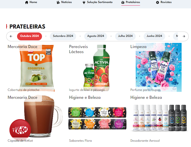 Os itens são divididos pelo mês de lançamento e trazem as principais informações como gramatura, sabor, categoria, e portfólio, além das tendências do setor que influenciaram sua concepção. Nosso objetivo é que você consulte as novidades e encontre opções para ampliar o mix da sua loja.