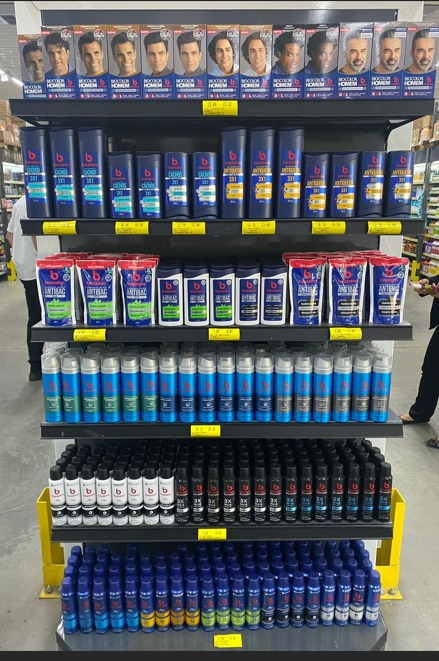 A exposição de produtos para cuidados pessoais pode ser executada de diferentes formas. No caso dos itens para cuidados masculinos, uma estratégia é colocar as diferentes categorias juntas, possibilitando uma interação entre elas e criando espaços denominados “mundo homem”. Inclusive, essa é uma das estratégias adotadas pela Coty no varejo alimentar.
