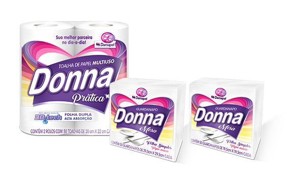 Donna, uma das marcas fabricadas pela empresa, passa neste momento por uma revitalização e logo estará de cara nova nas gôndolas de todo o Brasil. "Estamos alterando a identidade visual da marca Donna (foto), que passará em breve a ter não só um novo posicionamento, indo mais de acordo com as preferências e necessidades do consumidor, mas também uma nova linha de papéis toalha para um público que procura qualidade e preço, e para os varejistas que buscam trazer um maior volume de vendas para o seu estabelecimento", exemplifica Thiago Mazeto, Diretor de Vendas, Marketing e Suppley Chain da Damapel. Dentro desse processo de reformulação, complementa o executivo, o portfólio será ampliado com a oferta de toalhas de papel para um público que busca qualidade e excelente custo-benefício e para os varejistas que procuram alternativas e inovação para os seus estabelecimentos comerciais.