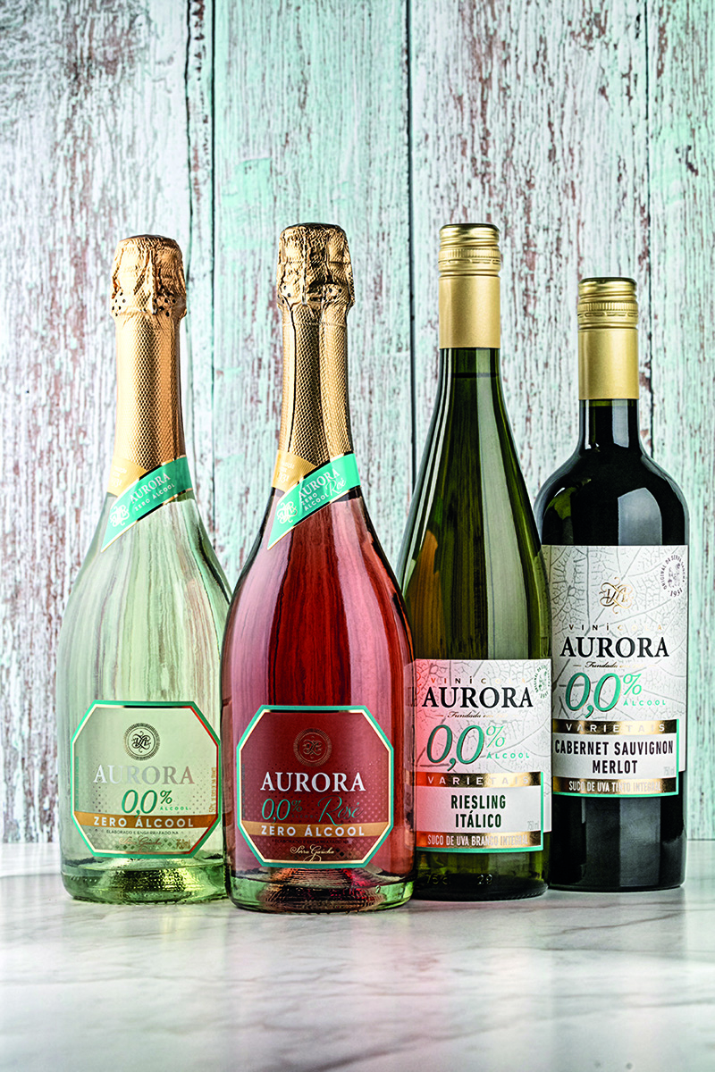A linha de espumantes também se expandiu agora com o Aurora Extra Brut. Já as bebidas Zero Álcool ganham o vinho tinto Cabernet Sauvignon e Merlot, e o branco Riesling Itálico.