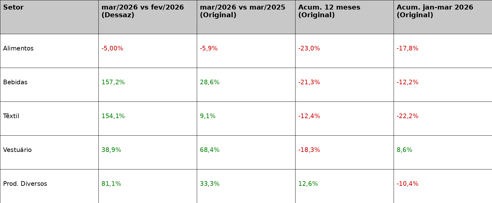 Os dados setoriais reforçam que o avanço de março não foi isolado, apresentando uma heterogeneidade relevante entre os nichos. Confira abaixo o desempenho detalhado dos segmentos que lideram essa inflexão: