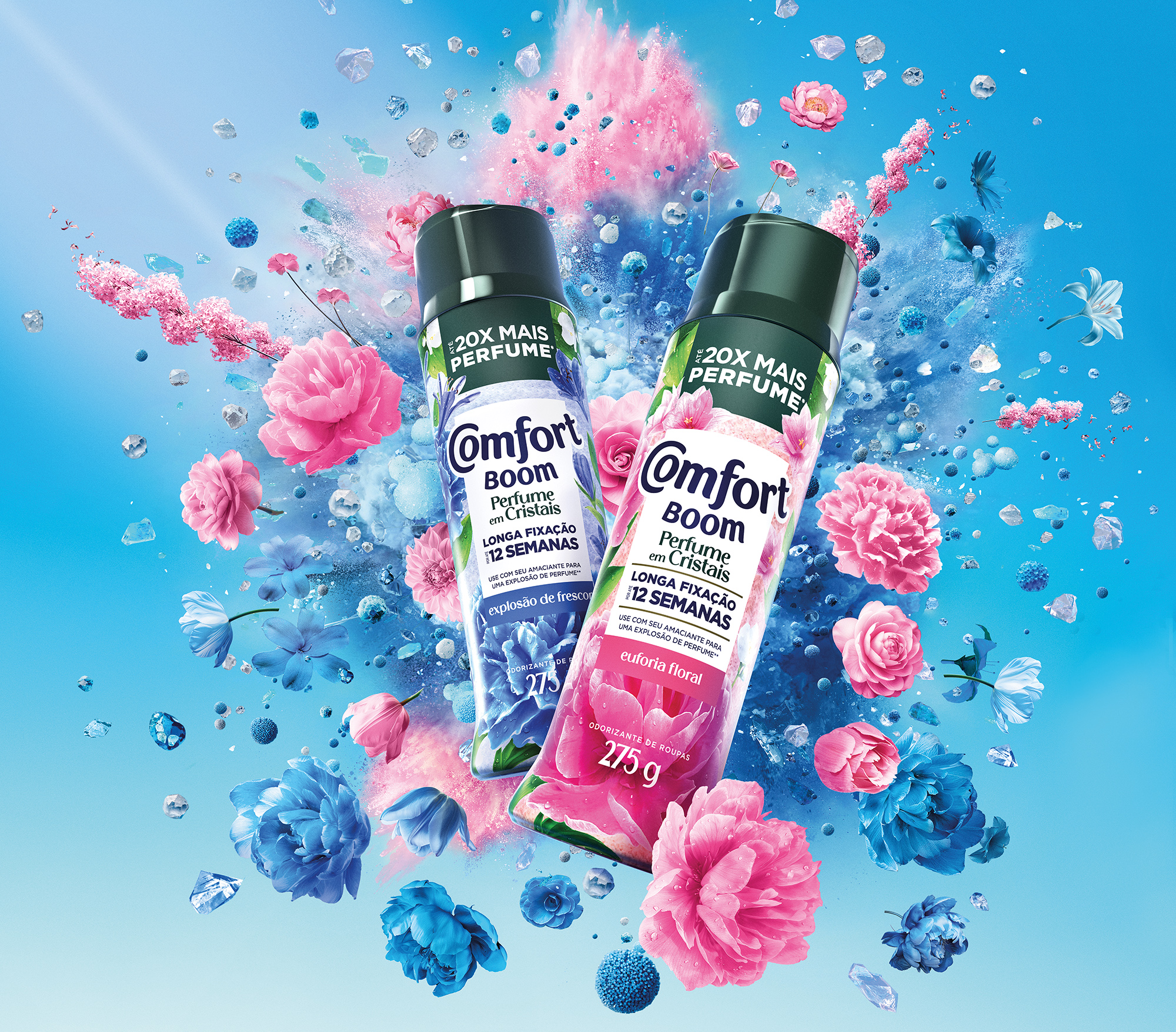 Colocar itens de maior valor agregado, com base em muita pesquisa, à disposição de varejistas e consumidores é parte da estratégia global da Unilever, replicada também no Brasil. A mais recente novidade que está chegando ao mercado é o Comfort Boom. Segundo a companhia, a novidade intensifica o perfume das roupas até 20 vezes mais, complementando o processo de lavagem. Por essa razão, a nova linha se posiciona como Perfume de Roupas em Cristais. O produto foi desenvolvido para ser usado com o amaciante. De acordo com a Unilever, o Comfort Boom conta com duas fragrâncias – Euforia Floral e Explosão de Frescor – e tem preço sugerido de R$ 17,99 a embalagem de 275 g.