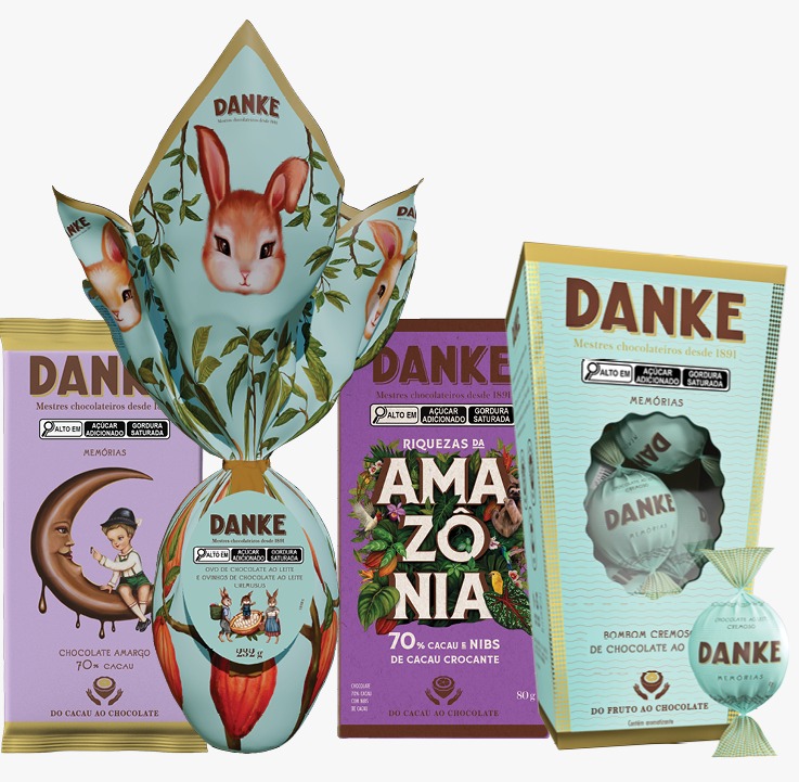 A marca Danke foi criada com o propósito de trazer para a categoria dos chocolates premium um produto nacional em que a qualidade se equipara aos melhores chocolates europeus. Sua linha completa atende diversas ocasiões de consumo com barras, bombons, wafers e Ovos de Páscoa, elaborados com 100% cacau brasileiro fermentado e de alta qualidade, além de um cuidado especial em toda a cadeia de produção, desde o plantio do cacau até o produto final, trabalhando somente com agricultura familiar, livre de trabalho infantil, em área livre de desmate ou queimadas e praticando o comércio justo, reconhecendo a qualidade do cacau e pagando prêmio sobre preço de cacau comum.