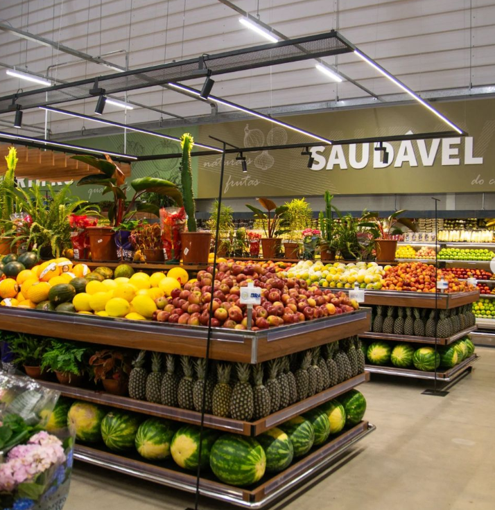 Assim, o estabelecimento foi completamente modernizado, desde a fachada, até a revisão do fluxo de compras e layout, que inclui mudanças visuais, como a sinalização dos setores e a iluminação dos corredores.