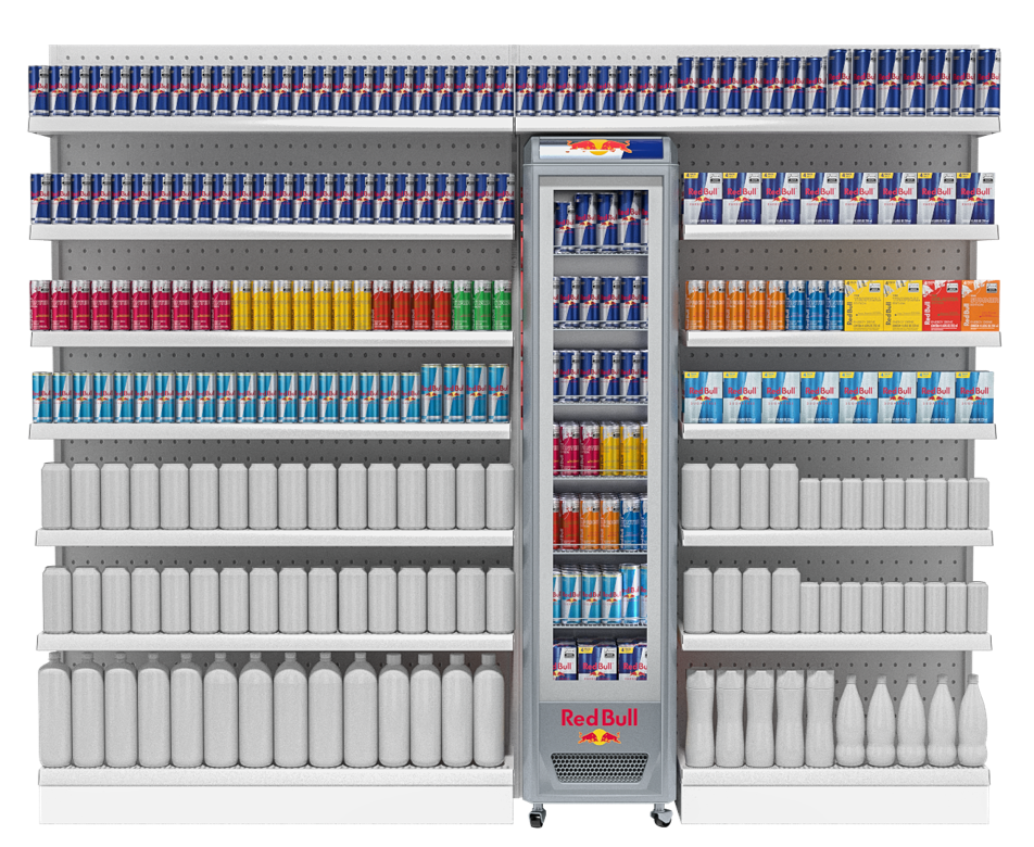 Ao ajustar o espaço da categoria, é importante desenvolver as marcas de maior valor agregado. Quanto maior o espaço de Red Bull, maior a penetração, o ticket médio e as unidades em cada ticket de compra.